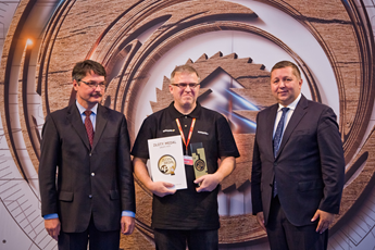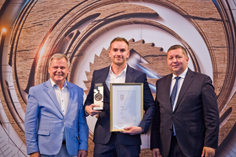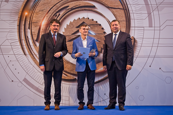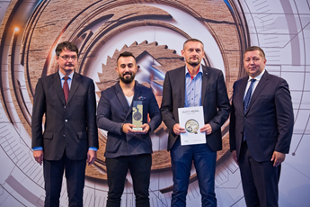 Piły RazorCut – PLUS doskonale sprawdzają się w rozkroju płyt drewnopochodnych pojedynczo i w pakiecie do wysokości 60 mm z ostrzami ultra HW. Złoty Medal odebrał pan Michał Augustyńczyk – Kierownik Sprzedaży Leitz-Polska