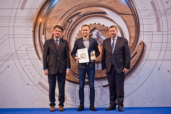 Nowoczesny frez spiralny łamie dotychczasowe schematy pracy – łączy frezy wykańczające, zgrubne lub frezy zgrubno-gładkie i frezy prawo i lewo obrotowe. Nagrodę odebrał pan Krzysztof Noga właściciel firmy N-POL.