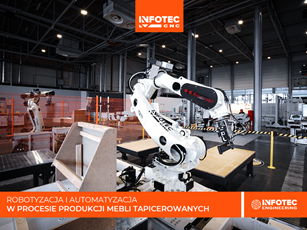 Nowością w tego rocznej edycji TAPICERNIA 4.0 będzie Zrobotyzowane stanowisko do oklejania stelaży meblowych pianką. Będzie to jednaz koncepcji, która pozwala na zrobotyzowanie czynności oklejania stelaży pianką meblową, koncepcja ta będzie doskonałym punktem do rozmów nt. robotyzacji i automatyzacji w procesie produkcji mebli tapicerowanych. Wydarzenie to będzie miało charakter panelu dyskusyjnego, dającego możliwość rozmowy ze specjalistami B+R z InfoTEC ENGINEERIGN. Dodatkowo porozmawiamy o dobrze już znanym zrobotyzowanym gnieździe produkcyjnym do zbijania elementów stelaży meblowych oraz o nowej odsłonie jednego z najpopularniejszych centrów obróbczych do nestingu w branży mebli tapicerowanych InfoTEC PRO EVO PLUS.