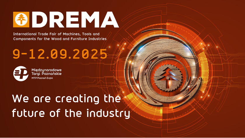 The DREMA International Trade Fair of Machines, Tools and Components for the Wood and Furniture Industries will be held from 9 to 12 September 2025 at the fairgrounds of MTP Poznań Expo – come and visit us.