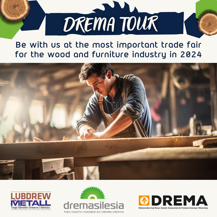 In 2024, a tour has been planned, consisting of three major trade fair events (#LUBDREW, #DREMASILESIA, #DREMA) presenting woodworking machinery and tools, representing the most important meetings of representatives of the wood and furniture industry in Poland and Central and Eastern Europe. All events under the DREMA TOUR banner are organized in 3 modules: ACADEMY, SHOWS and FAIRS.
