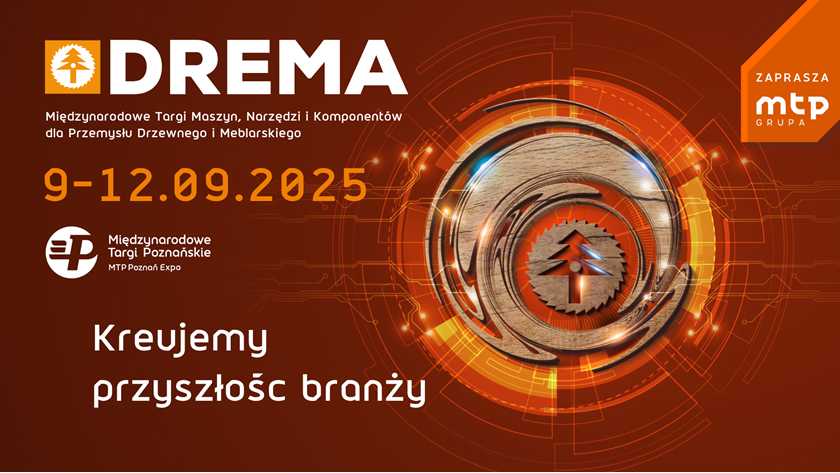 Międzynarodowe targi Maszyn, Narzędzi i Komponentów dla Przemysłu drzewnego i Meblarskiego DREMA odbędą się w dniach 9-12 września 2025 roku, na terenie Międzynarodowych Targów Poznańskich – zapraszamy serdecznie!
