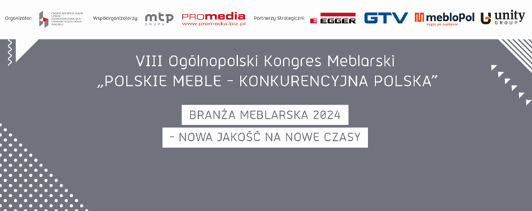 Zapraszamy do udziału w VIII Ogólnopolskim Kongresie Meblarskim „Polskie Meble – Konkurencyjna Polska”, który odbędzie się już dziś - 13 września w Poznaniu. Spotkanie, organizowane przez Ogólnopolską Izbę Gospodarczą Producentów Mebli we współpracy z Międzynarodowymi Targami Poznańskimi i firmą Promedia Jerzy Osika, odbędzie się pod hasłem: „Branża meblarska 2024 - nowa jakość na nowe czasy”.