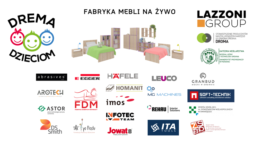 Podczas tegorocznych Międzynarodowych Targów Maszyn i Narzędzi dla Przemysłu Drzewnego i Meblarskiego DREMA (10-13.09.2024 r.) odbyła się kolejna edycja projektu DREMA DZIECIOM. Jest to akcja charytatywna, przeprowadzana w formie pokazowej produkcji mebli na żywo, organizowanej przez Stowarzyszenie Producentów Maszyn, Urządzeń i Narzędzi do Obróbki Drewna DROMA, Wydział Leśny i Technologii Drewna Uniwersytetu Przyrodniczego w Poznaniu oraz Grupę MTP. Partnerem wykonawczym jest firma Lazzoni Group.